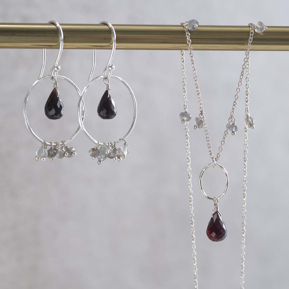 Fireworks Garnet Labradorite Silver Earrings