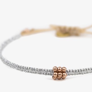 Bracelet avec cotte de maille fine argentée et fil de soie