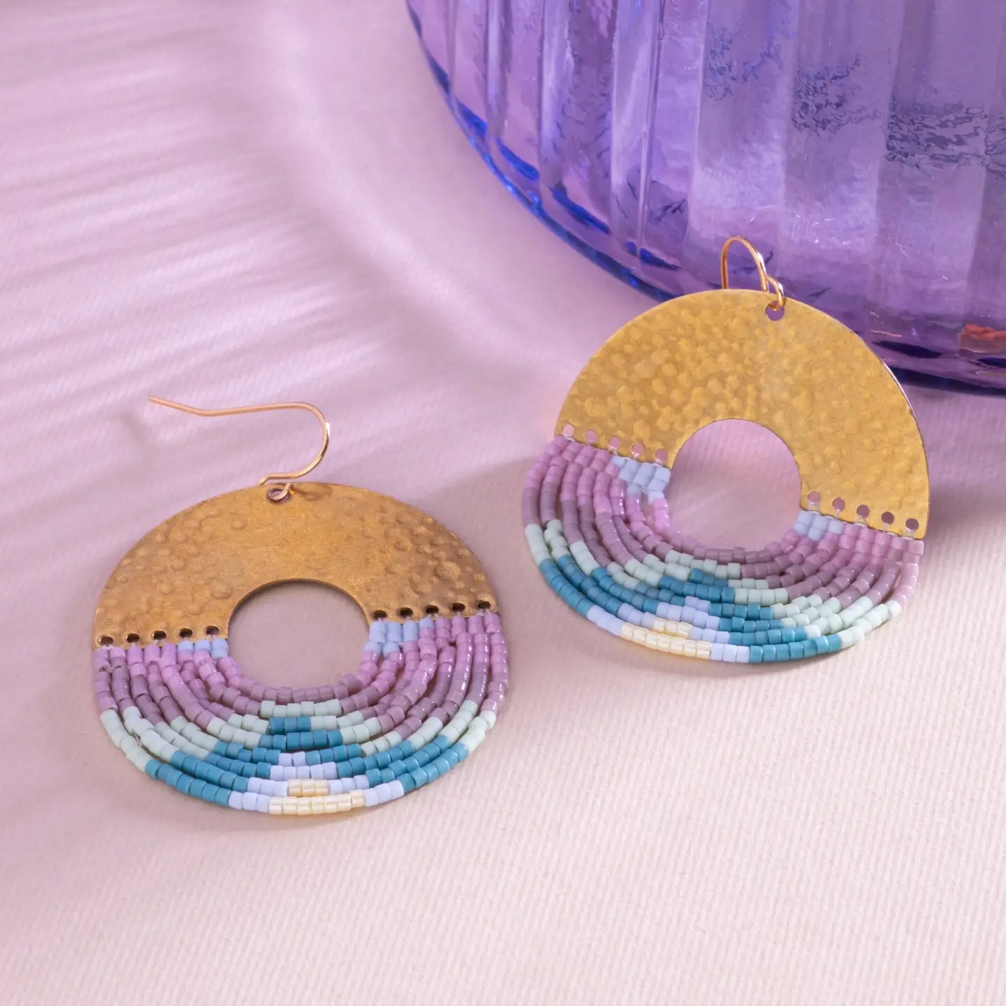 Beaded Handwoven Organic Circular Fringe Earrings (Pastel)