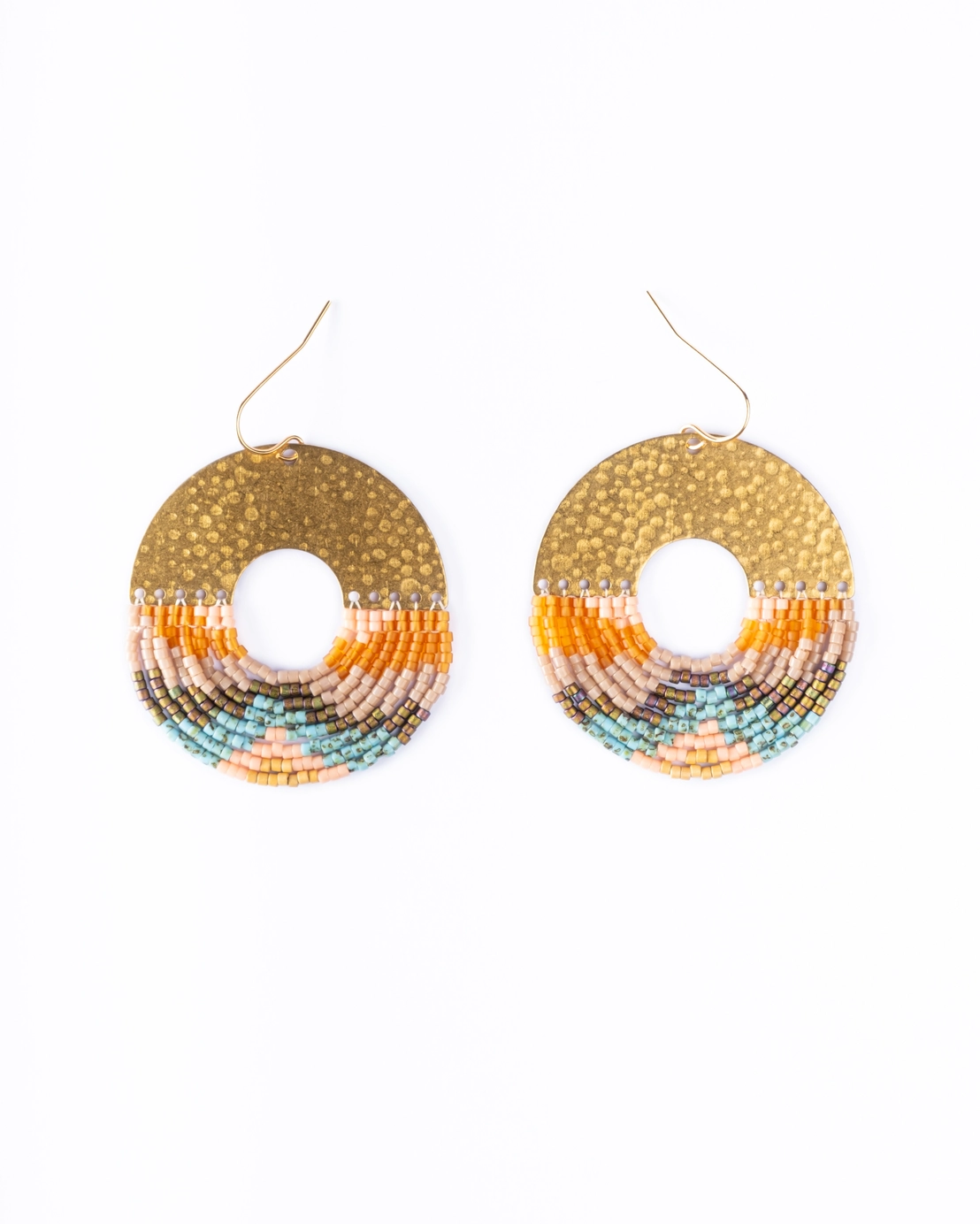 Beaded Handwoven Organic Circular Fringe Earrings (Earth)