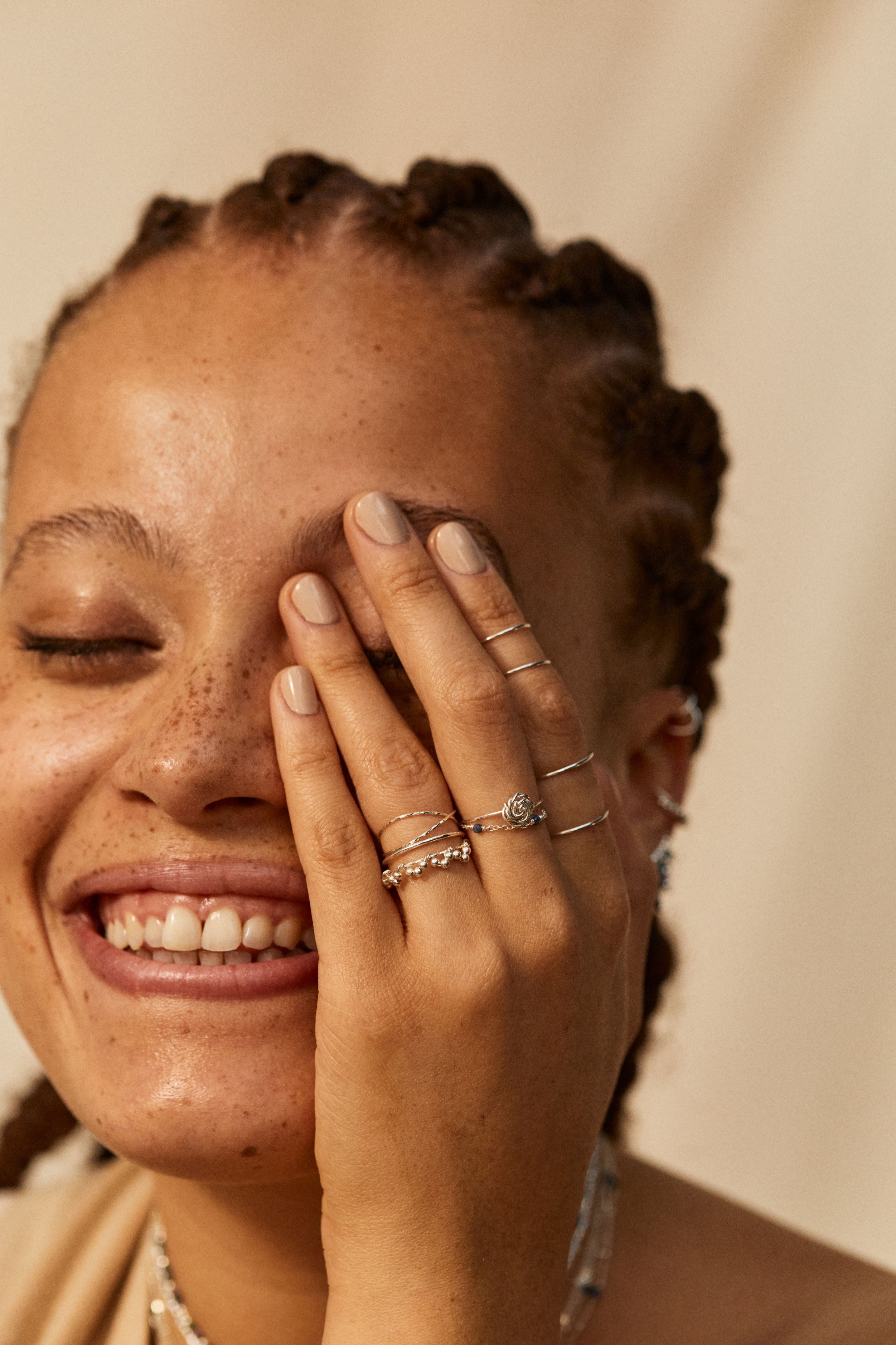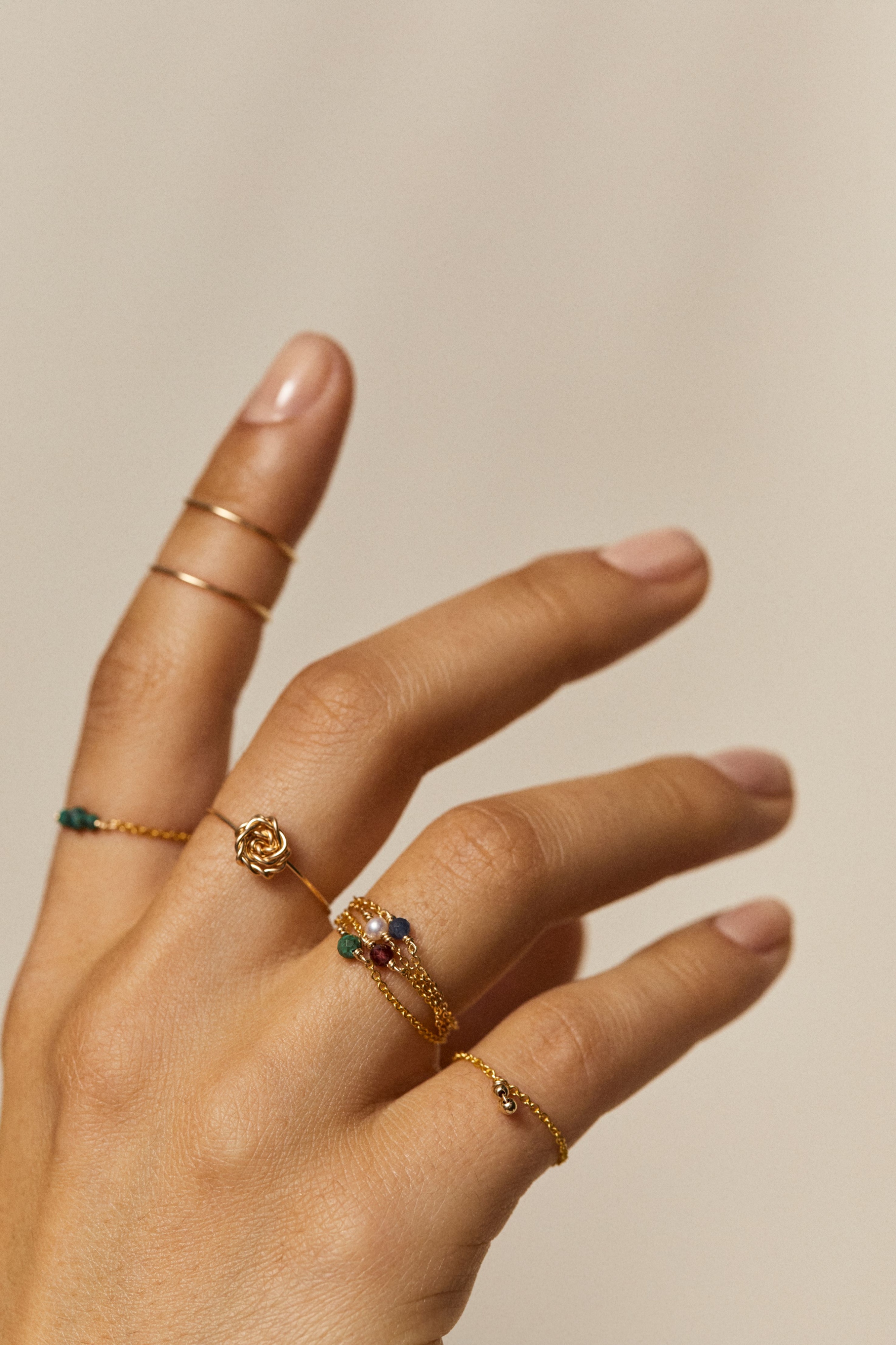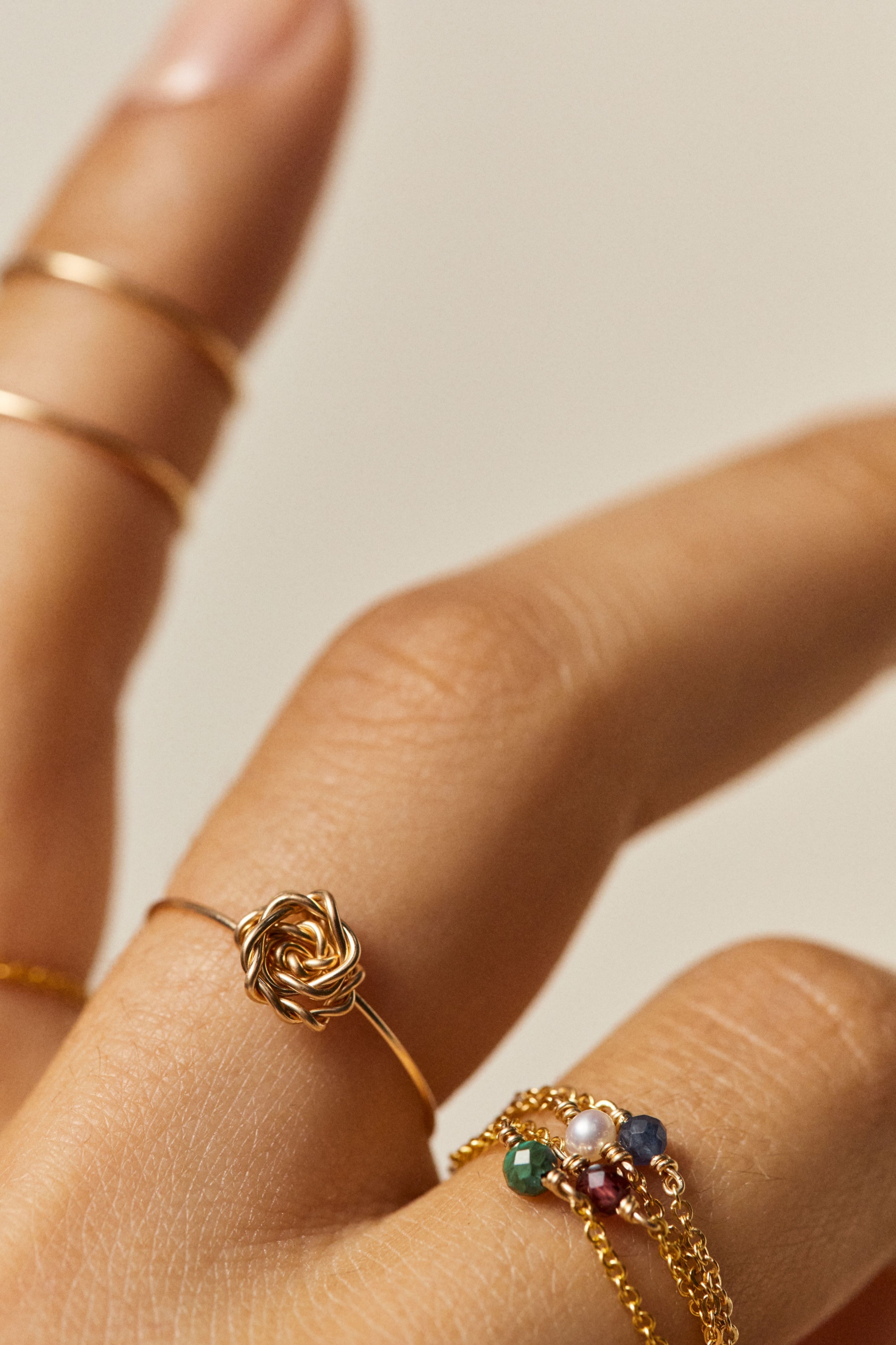 La bague Fleur torsadée est composée d’un anneau en fil lisse, s’entortillant pour former une fleur éclose et féminine, LA fleur iconique de cette collection.