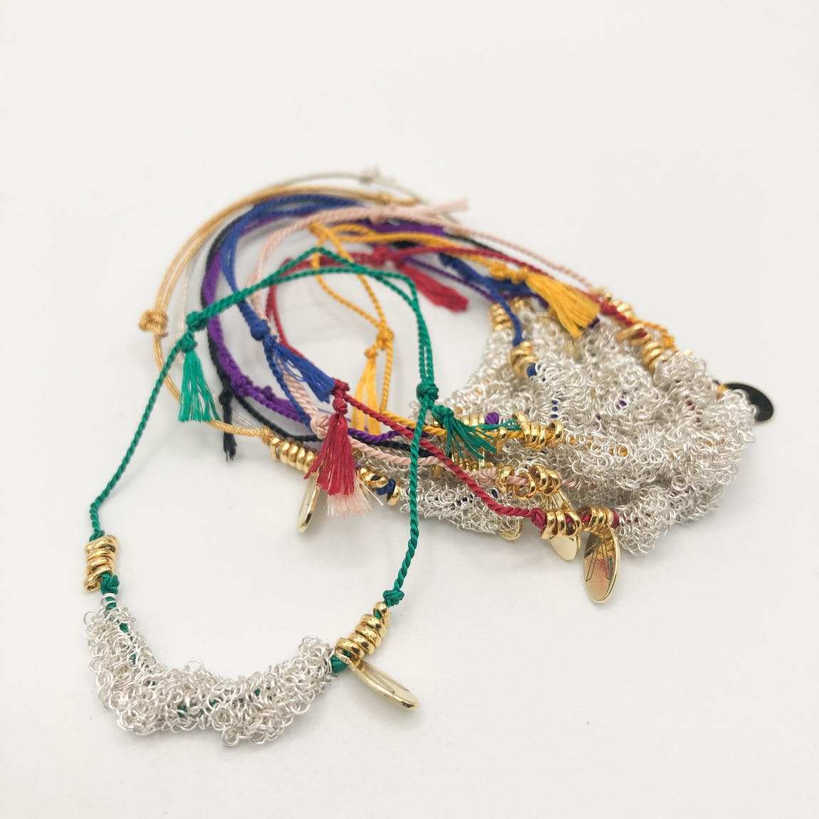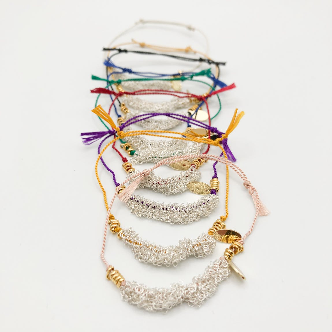 - bracelet avec cotte de maille et fil de soie coloré mat
