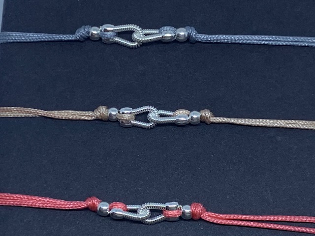 - Bracelet Femme Cordon Mini Toi & Moi en corde de guitare argentée, cordon nylon ou soie ( divers coloris de cordon )