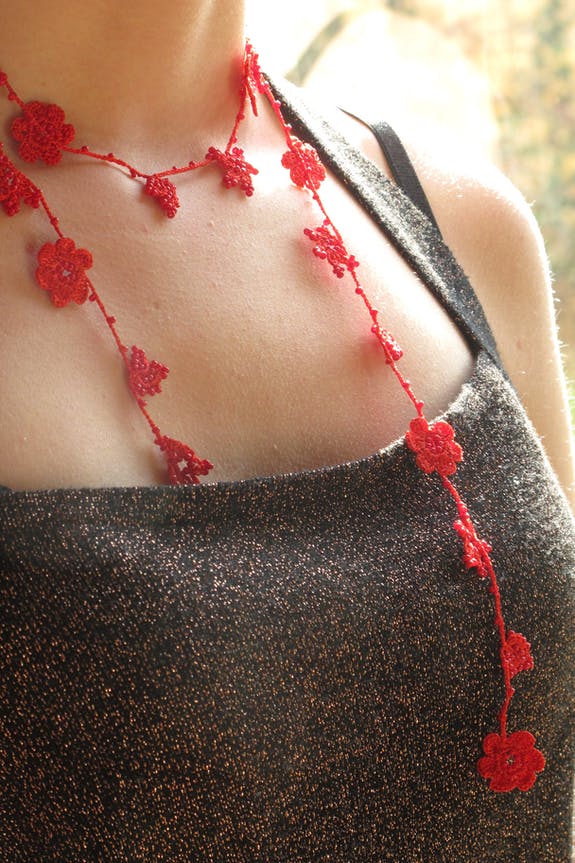 Sautoir en dentelle, fait main