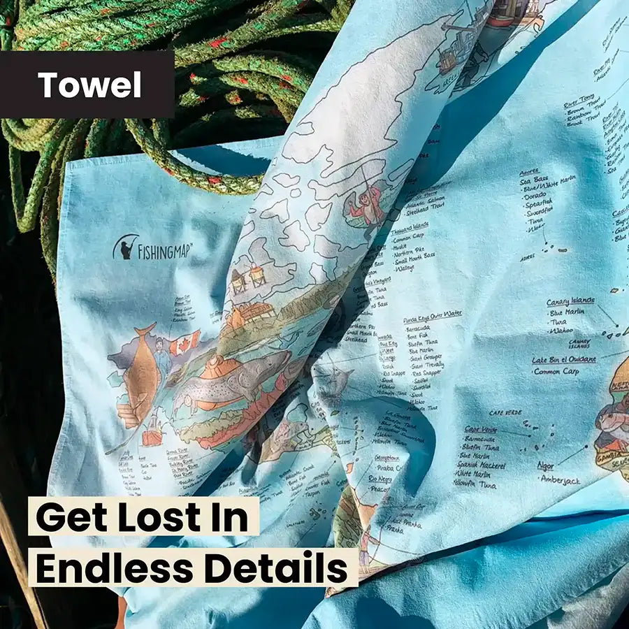 Fishing Map Beach Towel