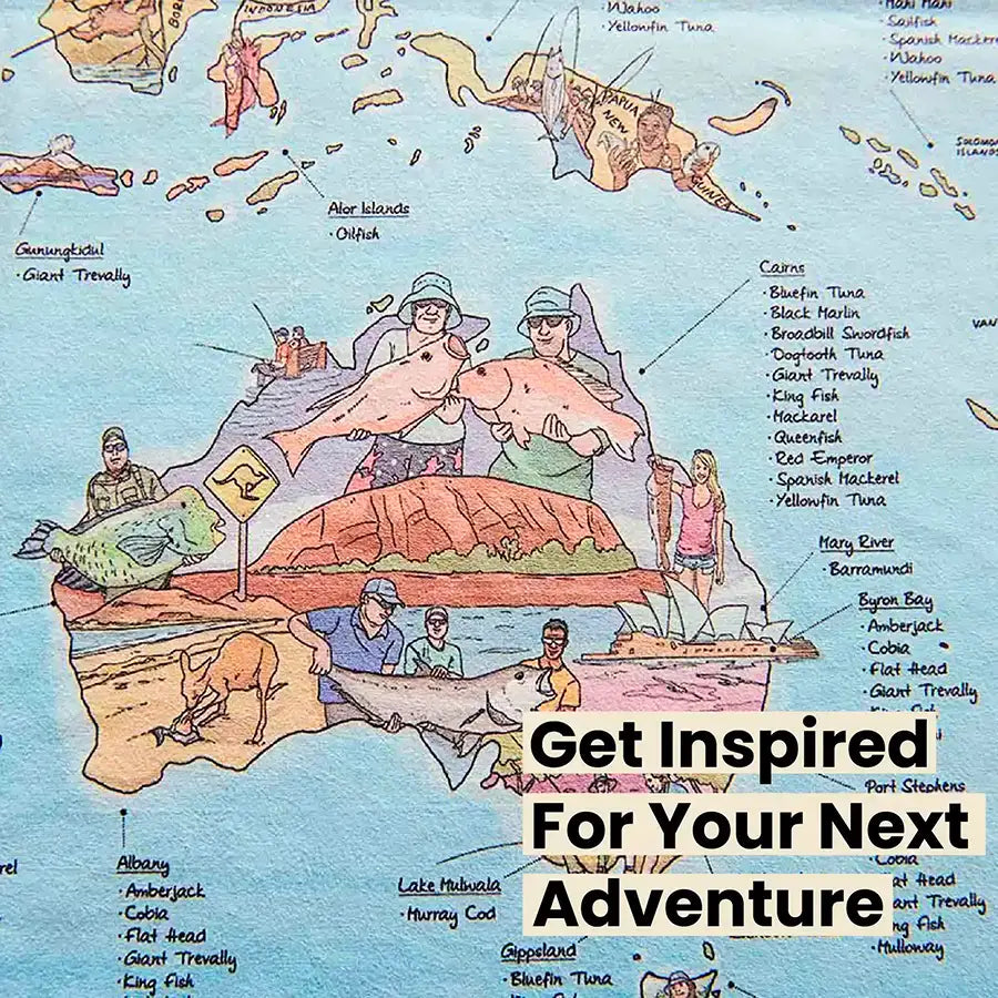 Découvrez le monde de la pêche sur cette carte.Illustré à la main avec le souci du détail.