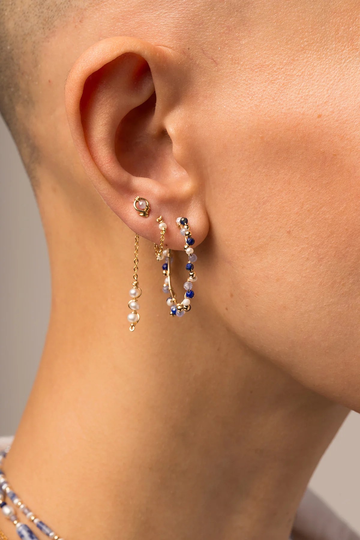 Les minis puces Coquille sont composées d’un petit anneau de fil or encerclant une pierre tanzanite.